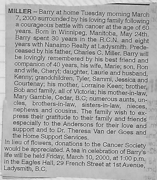 Died: 07 Mar 2000, Ladysmith, British Columbia