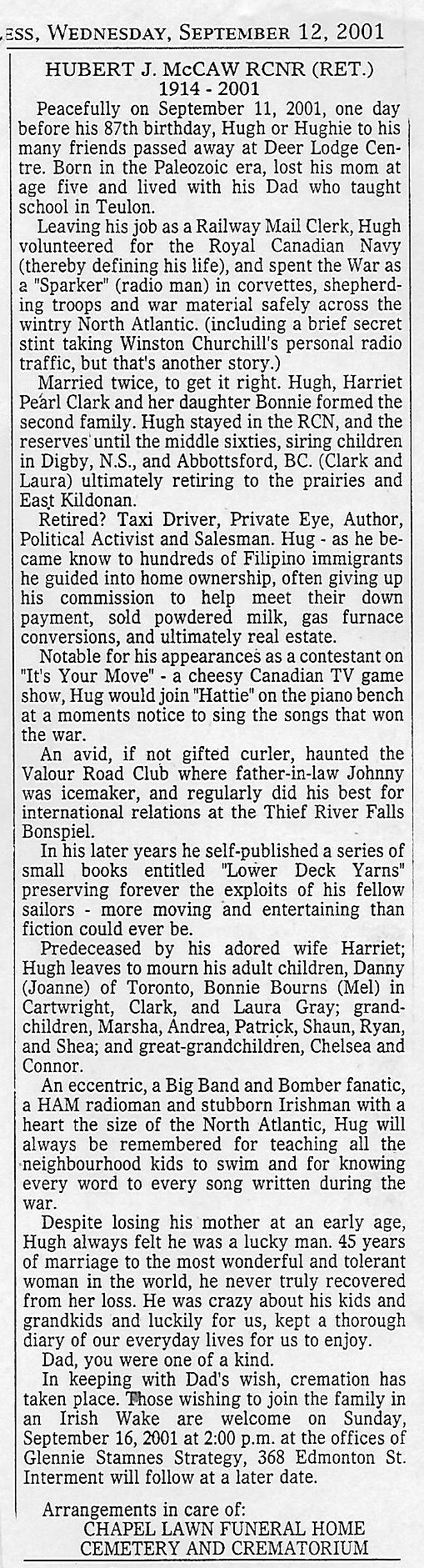 The Winnipeg Free Press 12 Sep 2001