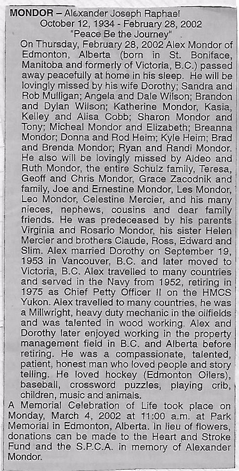 Died: 28 Feb 2002, Edmonton, Alberta