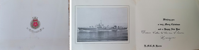 Christmas card that Victor sent Monique which he was deployed to Korea on HMCS HURON 216