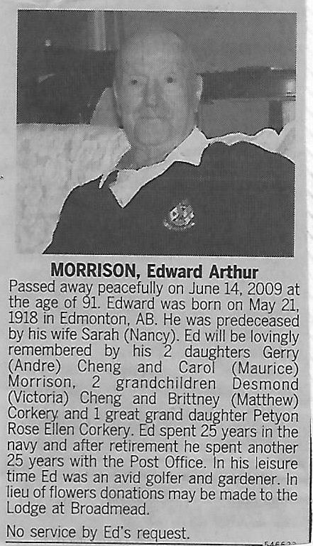 Served in the RCN 30 Sep 1937 - 29 Sep 1962