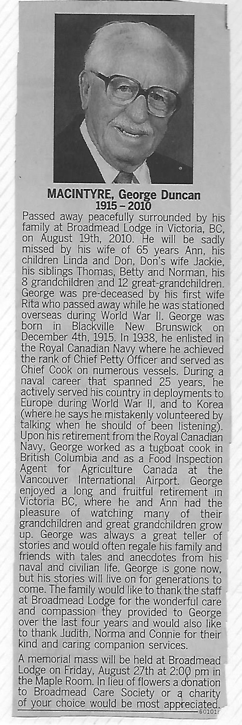 Born: 04 Dec 1915, Blackville, New Brunswick