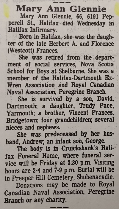 Died: 1987, Halifax, Nova Scotia