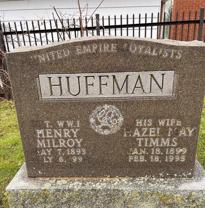 Headstone for Henry Huffman in the Bowman United Church Cemetery, Ancaster, Hamilton, Ontario.