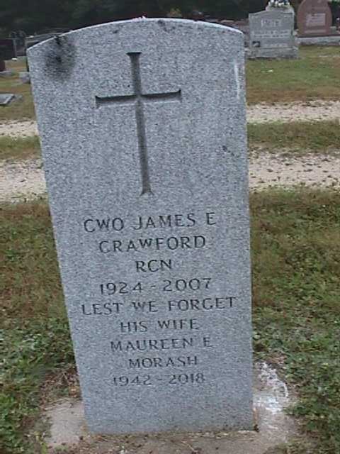 for CPO1 James Crawford in the Bayview Cemetery, Chester, Lunenburg Co., NS