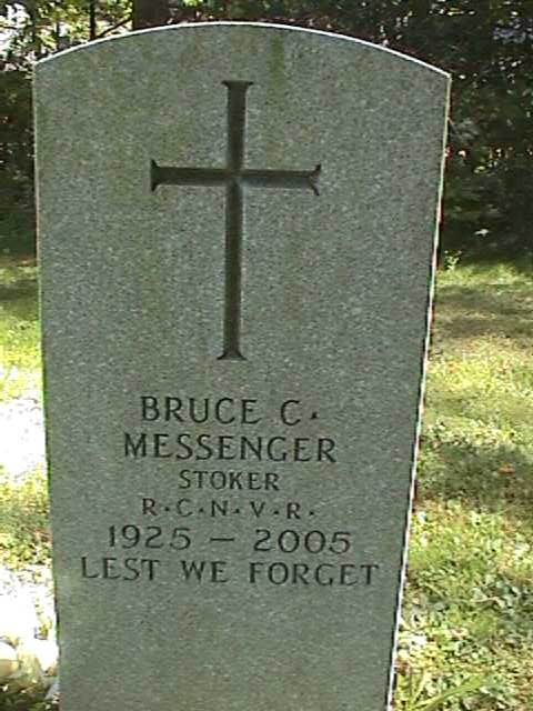 MESSENGER, Bruce Cleveland - 79, Wileville, Lunenburg Co., died May 16, 2005, in South Shore Regional Hospital, Bridgewater. Born in Clarks Harbour, he was a son of the late Smith and Louise (Nickerson) Messenger. He served in the Royal Canadian Navy during the Second World War. He is survived by his wife, Catherine; daughter, Valerie, at home; sons, Michael, at home; Stephen, Indianna; brothers, Donald (Norma), Gerald (Virginia), all of Clarks Harbour; numerous nieces and nephews. He was predeceased by brothers, Lawrence, Bernard, and Carl; sisters, Olive and Valerie. Private family funeral service and burial at a later date, Rev. Eric Campbell officiating. No visitation at the funeral home. Family flowers only. Memorial donations may be made to Canadian Cancer Society. Arrangements are under the direction of R.A. Corkum Funeral Home, Wileville. (the Halifax Herald 18 May 2005)