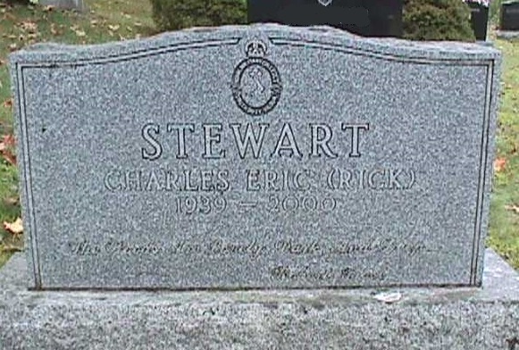 Headstone for Charles Eric (Rick) Stewart in the Park Cemetery, Mahone Bay, Lunenburg NS