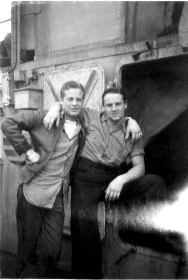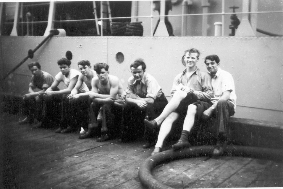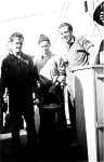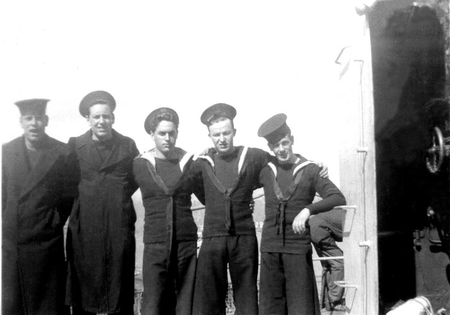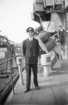 (DD131) Gordie and Fred onboard HMCS OWEN SOUND K340 while alongside in Londonderry, Northern Ireland (DD132) Larry Bowen onboard HMCS OWEN SOUND K340 while alongside in Londonderry, Northern Ireland (DD133) Al Gilmore with a lady friend outside the Imperial Hotel in Belfast, Northern Ireland (DD134) Dan Dunbar, Shorty and Al Gilmore outside the Imperial Hotel, Belfast, Northern Ireland (DD135) Dan Dunbar, Shorty and Al Gilmore outside the Imperial Hotel, Belfast, Northern Ireland