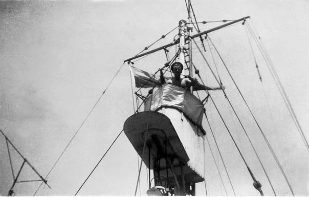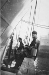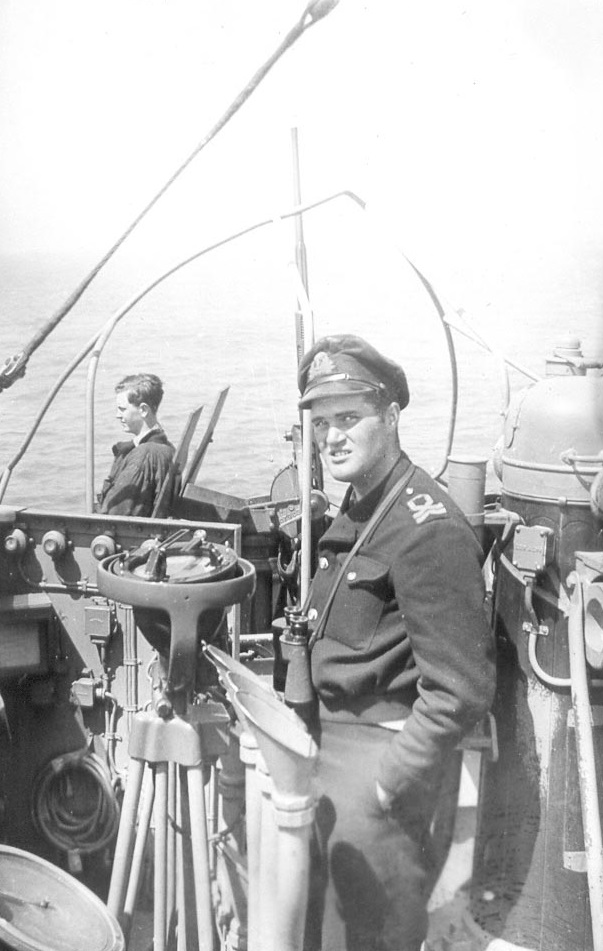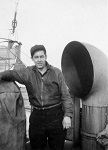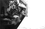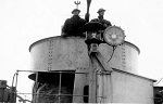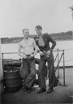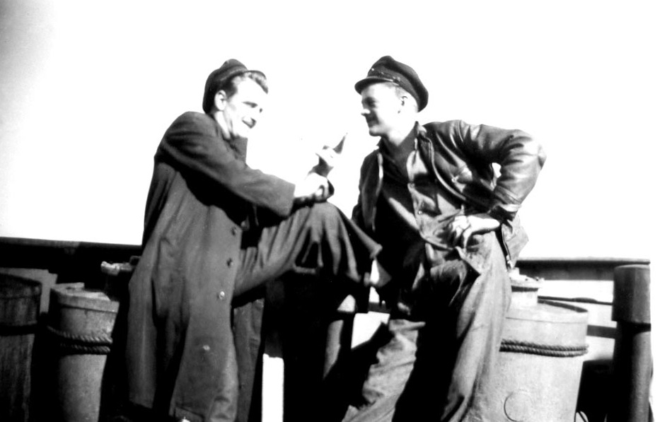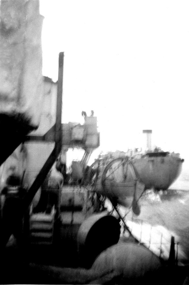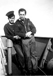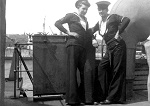 (DD158) Unknown sailor at sea on HMCS OWEN SOUND K340 (DD159) Wally Potruff at sea on HMCS OWEN SOUND K340 (DD160) "Mac" at sea on HMCS OWEN SOUND K340 (DD161-DD162) Dan Dunbar and winger on watch / lookout in the after gun tub on HMCS OWEN SOUND K340