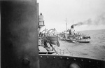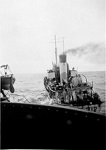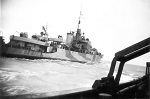 (DD109) Unknown merchant ship of the port quarter of HMCS OWEN SOUND K340 (DD110) Unknown River Class Destroyer (DD111) Unknown Allied Sub (DD112) Royal Navy Flower Class Corvette HMS CLOVER K134 (DD113) HMS CLOVER K1354 with an unknown frigate in the background. It appears if there is a ship's boat alongside the CLOVER