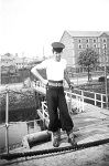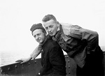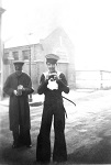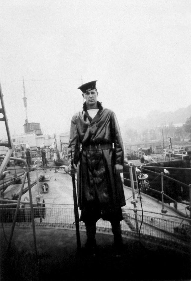(DD30-DD31) Unknown sailor on sentry duty on the gun deck of HMCS OWEN SOUND K340 (DD32) Unknown sailor on duty by the gangway of HMCS OWEN SOUND K340 (DD33) Unknown Royal Navy Wren on board HMCS OWEN SOUND K340 (DD34) Dan Dunbar (left) and shipmate outside a pub ... likely in Londonderry, Northern Ireland.