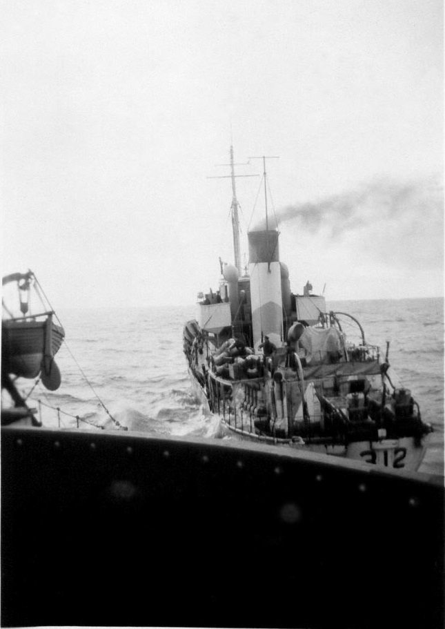 (DD60-DD62) Unknown Royal Navy warship - pendant number 312. Looks like an A/S Trawler (DD63) Dan Dunbar on HMCS OWEN SOUND K340 (DD64) Unknown sailors on HMCS OWEN SOUND K340