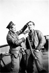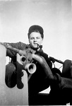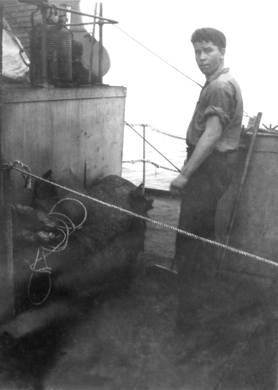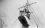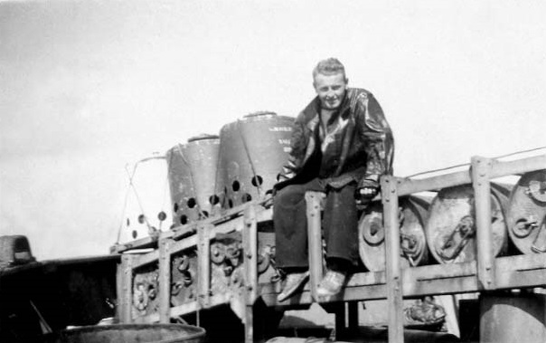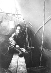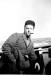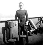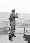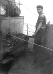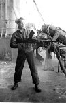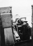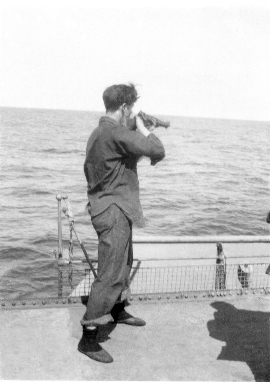 (DD153) Marty at sea on HMCS OWEN SOUND K340 working on the depth charge rails (DD154) "Our old buffer" at sea on HMCS OWEN SOUND K340 (DD155-DD156) Leo Carroll doing some target practice at sea on HMCS OWEN SOUND K340 (DD157) Unknown sailor at sea on HMCS OWEN SOUND K340