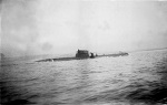 (DD119-DD123) Escort group manoeuvers into line ahead formation (DD122-DD123) Unknown allied sub in position of starboard side of Escort Group column