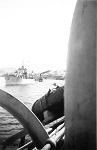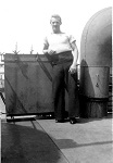 (DD183) Ships tied up astern of HMCS OWEN SOUND K340. The 2 on the right appear to be American destroyers (DD184) HMCS JONQUIERE K318 in an unknown port - possibly St. John's, Nfld (DD185) Quartermaster beside the gun deck on HMCS OWEN SOUND K340 (DD186) Dan Dunbar on HMCS OWEN SOUND K340 (DD187) Unknown sailor working out with a speed bag on HMCS OWEN SOUND K340