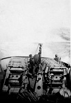 (DD143) Machine gun practice on HMCS OWEN SOUND K340 (DD144) .... and it appears he hit the ocean (DD145) Depth charge throwers on HMCS OWEN SOUND K340 - starboard side aft looking forward (DD146) Norm at sea on HMCS OWEN SOUND K340 (DD147) Jimmie at sea on HMCS OWEN SOUND K340