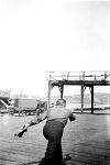 (DD188-DD189) A couple OWEN SOUND sailors practicing their pitching on the jetty (DD190) Two unknown OWEN SOUND sailors taking a photo of the person (Dan Dunbar) taking a photo (DD191) Unknown OWEN SOUND sailor in a park - location unknown (DD192) Unknown sailors on HMCS OWEN SOUND K340 ready to go ashore