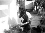(DD148) Bill Murray at sea on HMCS OWEN SOUND K340 (DD149) Unknown sailors on HMCS OWEN SOUND K340. Webmaster's note .... "Need a shave?" (DD150) Unknown sailor at sea on HMCS OWEN SOUND K340 (DD151) Unknown sailor at sea on HMCS OWEN SOUND K340 (DD152) Out old Jimmie (foreground) painting ship at sea on HMCS OWEN SOUND K340
