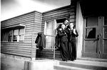 (DD198-DD200) Sailors off HMCS OWEN SOUND K340 in front of a USO - location unknown (DD198) Dan Dunbar on left (DD198) Dan Dunbar on right