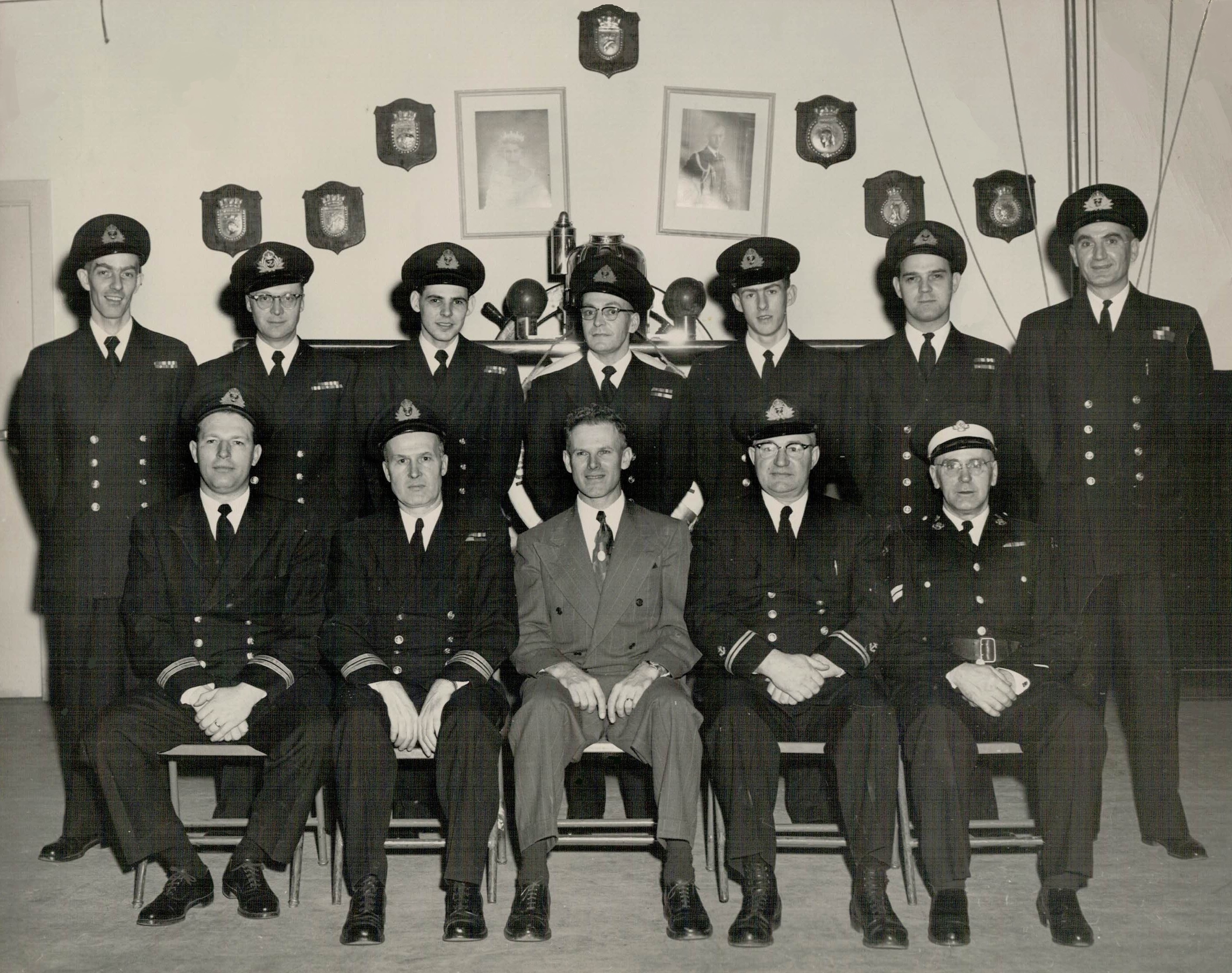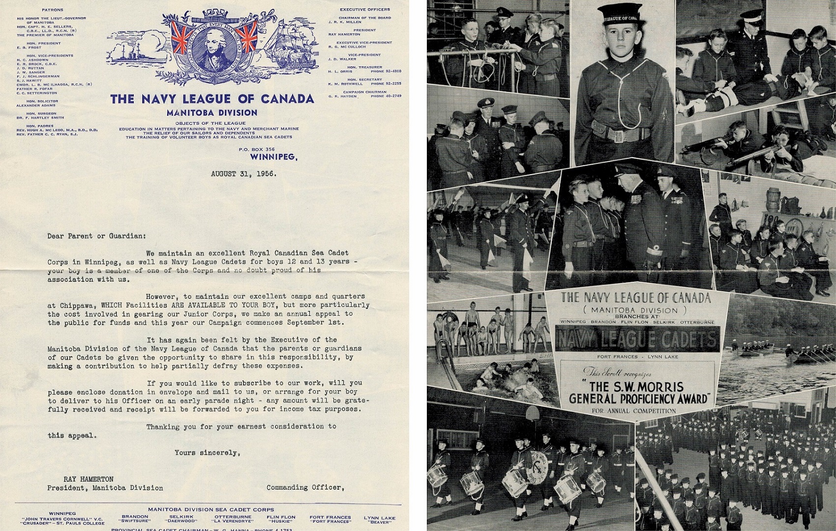 (DD212 Dan Dunbar with Navy League cadets (DD213) Navy League fund raising letter (DD214) Nay League officers - Dan Dunbar (rear, centre), Bill Messier (rear, 3rd from right)