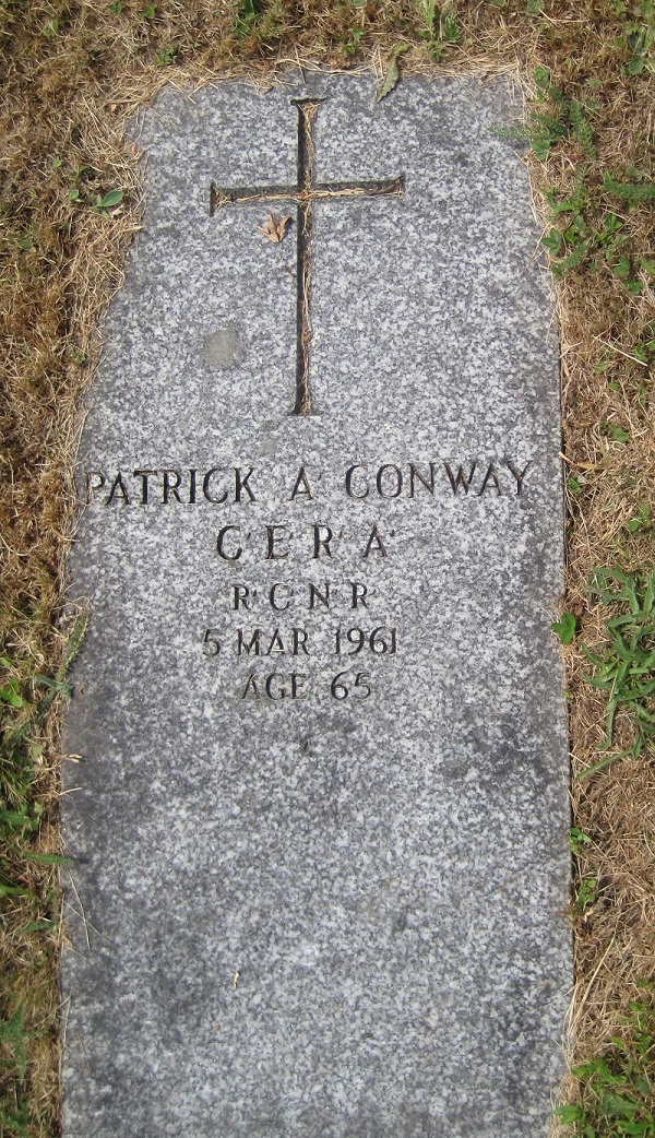 Son of Patrick John and Louise (née Pelerin) Conway, husband of Loretta Catherine (née Walsh) Conway. Patrick and Catherine (Katherine) were married by Banns that were proclaimed on 1st, 8th and 15 Oct 1916. Their marriage was dated 17 Oct 1916 at Canso, Nova Scotia.