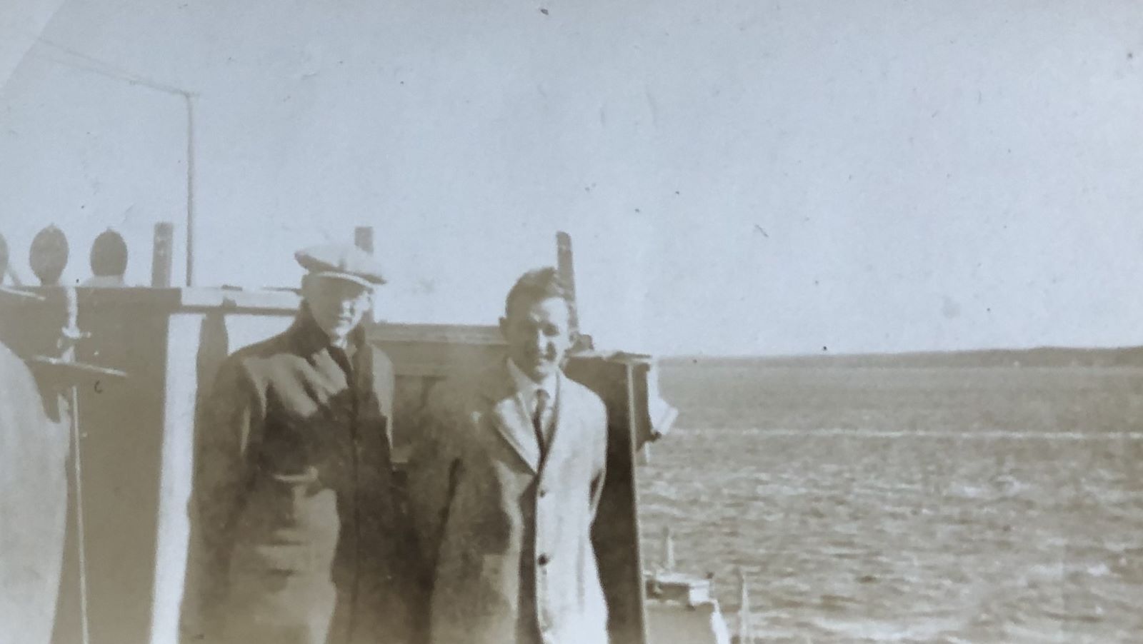 John “Panner” Brock with his father CH Brock on board HMCS LA HULLOISE in Oct 1945 on Kennebacasis River, New Brunswick