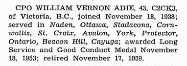 Retirement notice from the CROWSNEST magazine Dec 1959