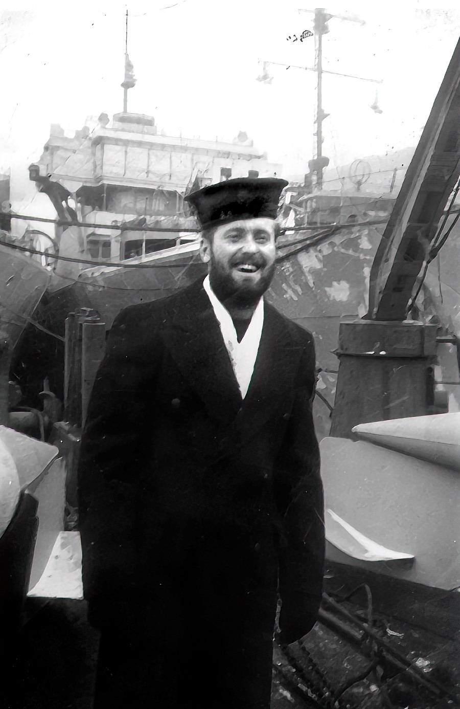 (AC09) White Ensign off HMCS STRATFORD J310 (AC10) Alex Cruickshank, sporting a beard, onboard HMCS STRATFORD (AC11) Alex Cruickshank on duty as Quartermaster, standing on the quarterdeck / sweepdeck of HMCS STRATFORD J310 (AC12) Alex Cruickshank onboard HMCS STRATFORD J310 at sea (AC13) HMCS STRATFORD J310 detonating a mine