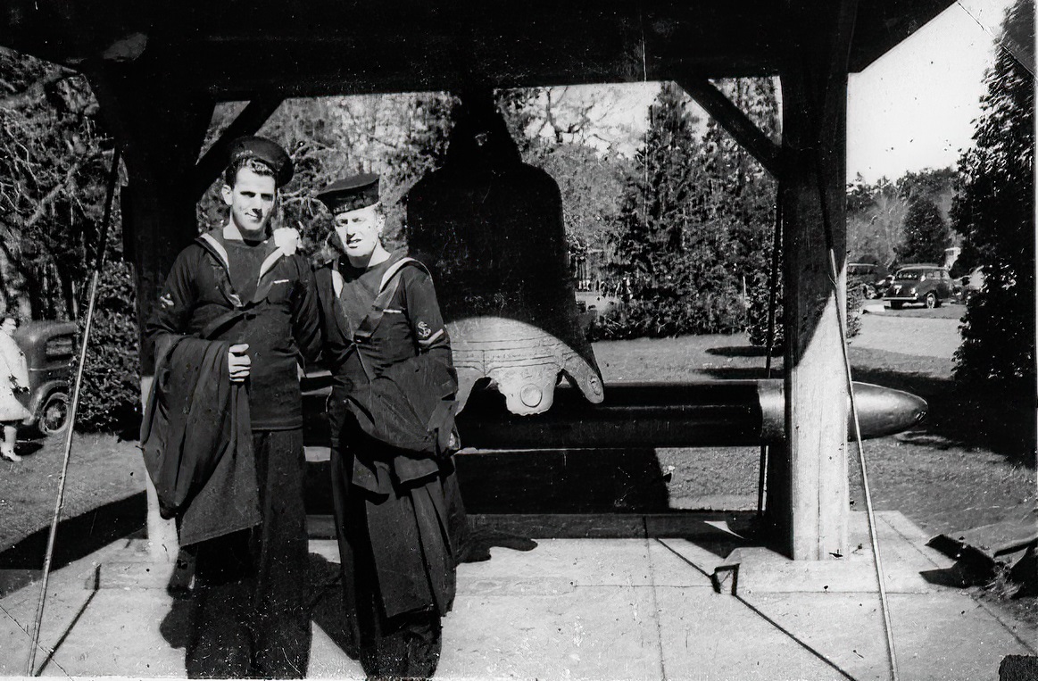 (AC06) LS Alex Cruickshank (on right) with unknown friend / shipmate in Victoria, Easter 1945 (AC07) VAC Booket - Information Regarding Mounting and Wearing of Decorations, Campaign Stars and Medals