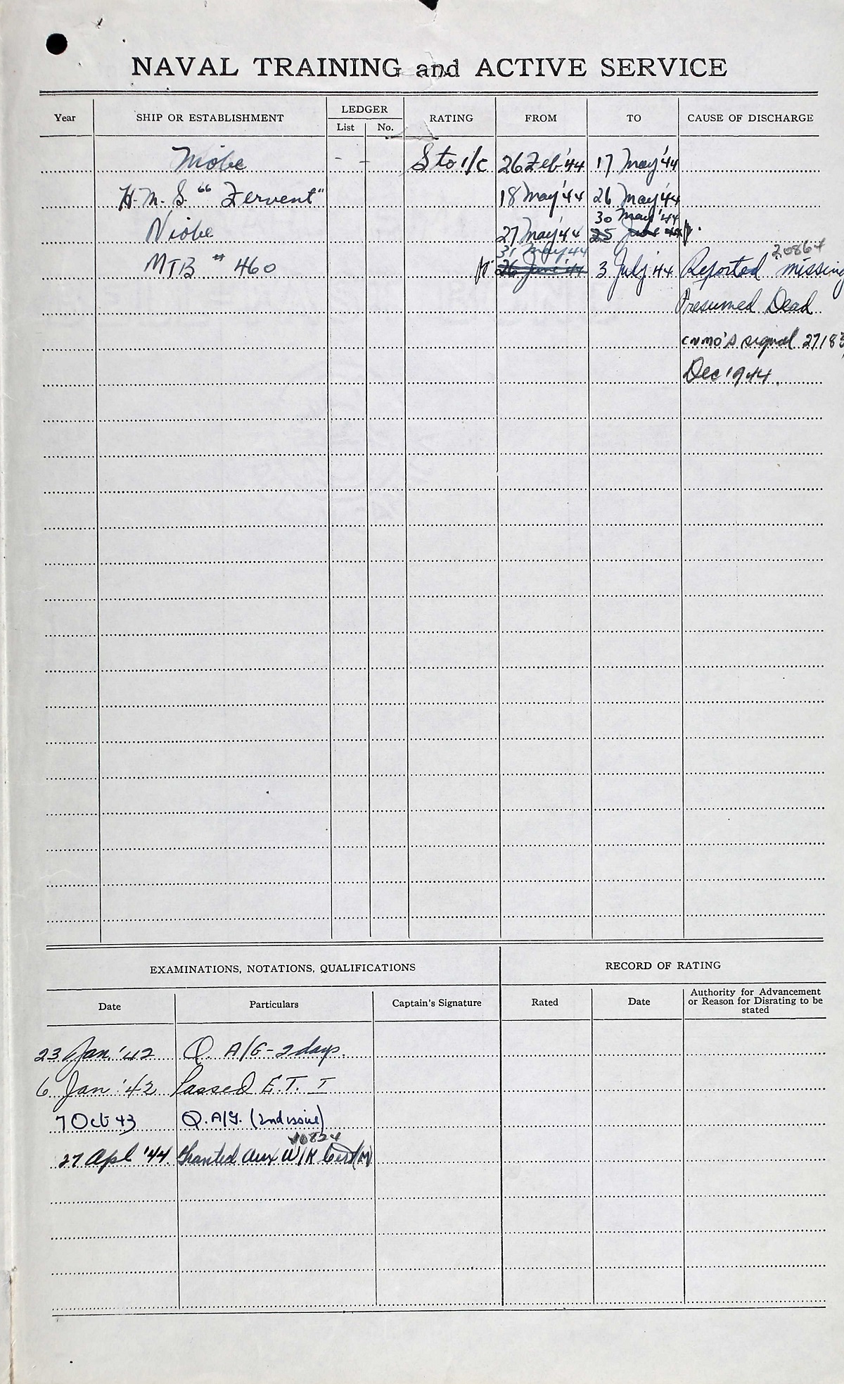 MTB-460 - Drafted to MTB-460 31 May 1944 as a Sto 1c, RCNVR