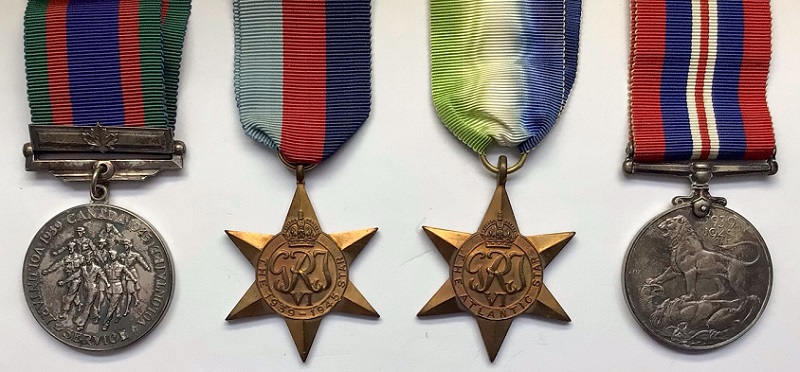 CPO Demers' medals The CVSM, The 1939-45 Star, The Atlantic Star, The War Medal 1939-45