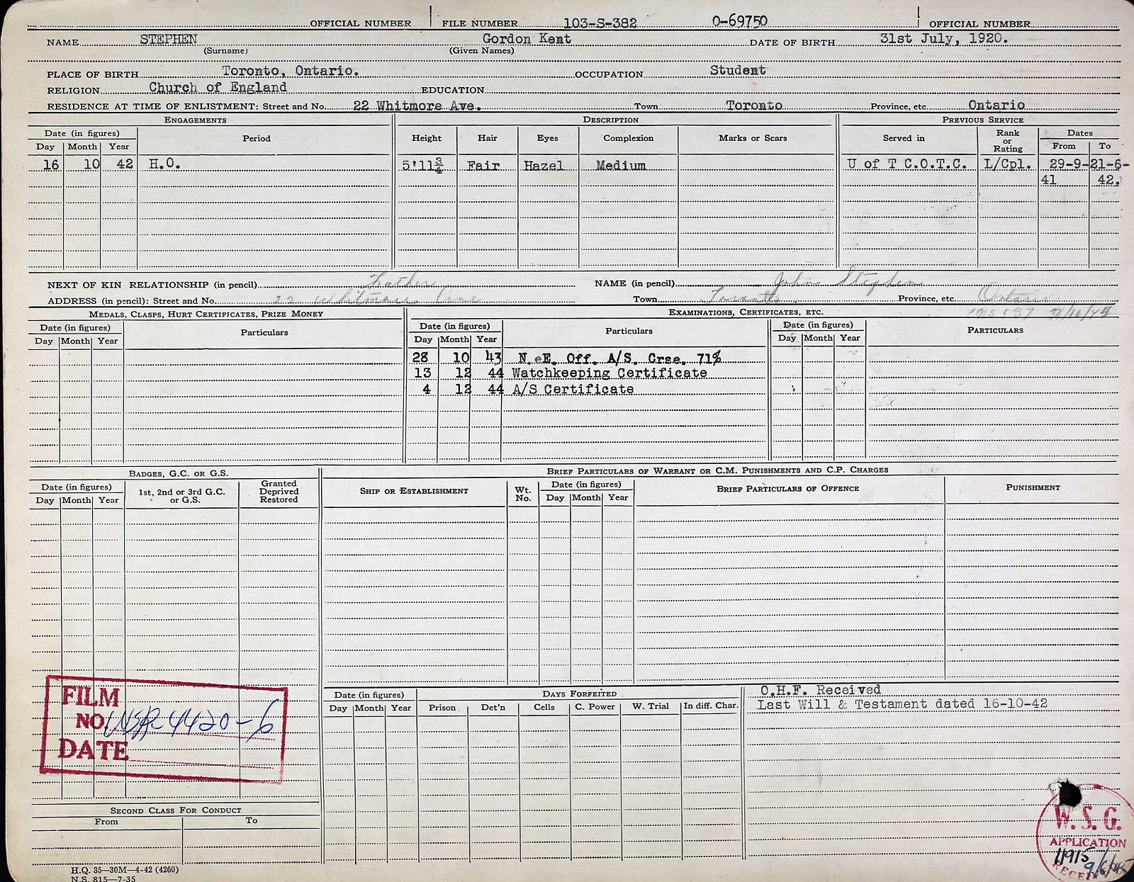 Gordon's brother, John Stuart Stephen, also served in the RCNVR during the Second World War.