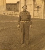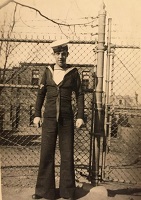 (HB02) Harold Branch by the gun mount on HMCS CHAMBLY K116