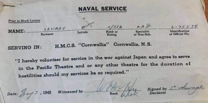 Cecil's twin brother Albert Savage also served in the RCNVR during the Second World War.