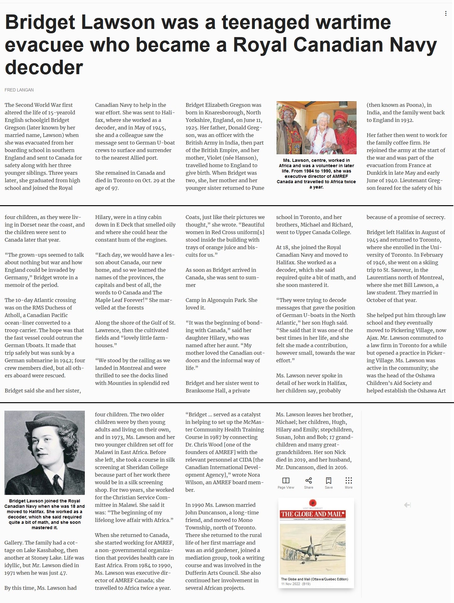 Click on the Globe and Mail article below to view a larger image