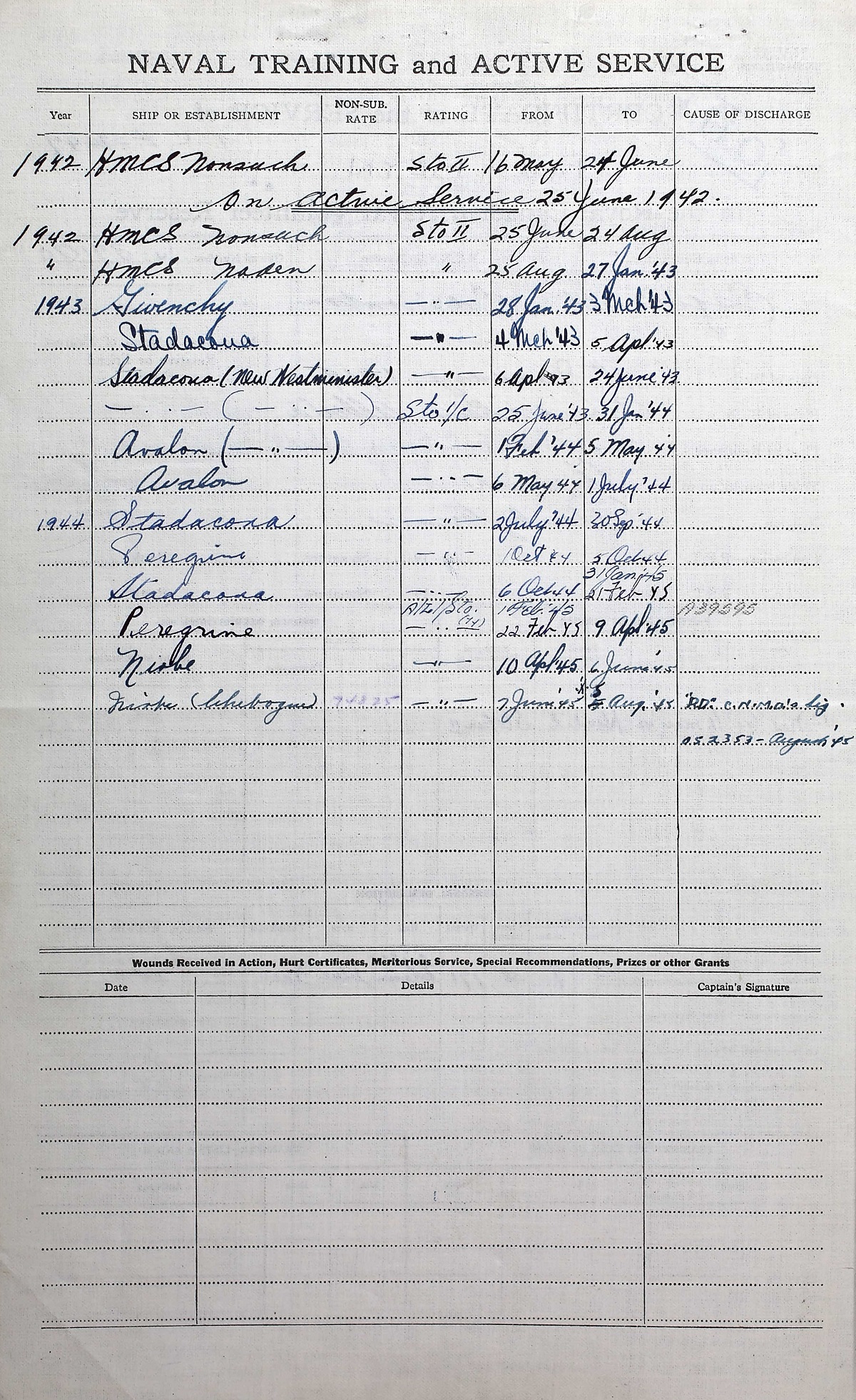 HMCS NONSUCH - Enlisted 16 May 1942. Commenced Active Service 25 Jun 1942