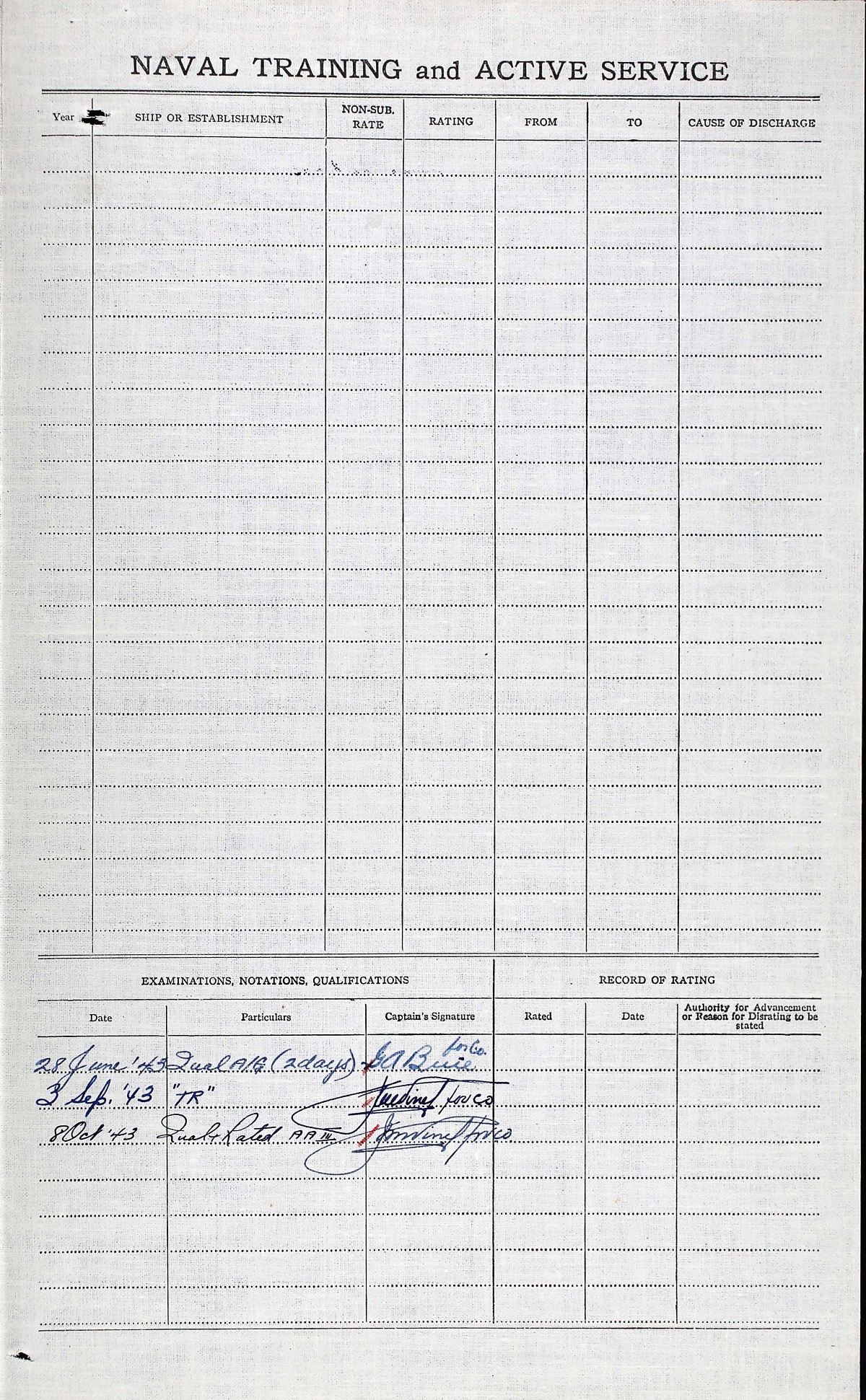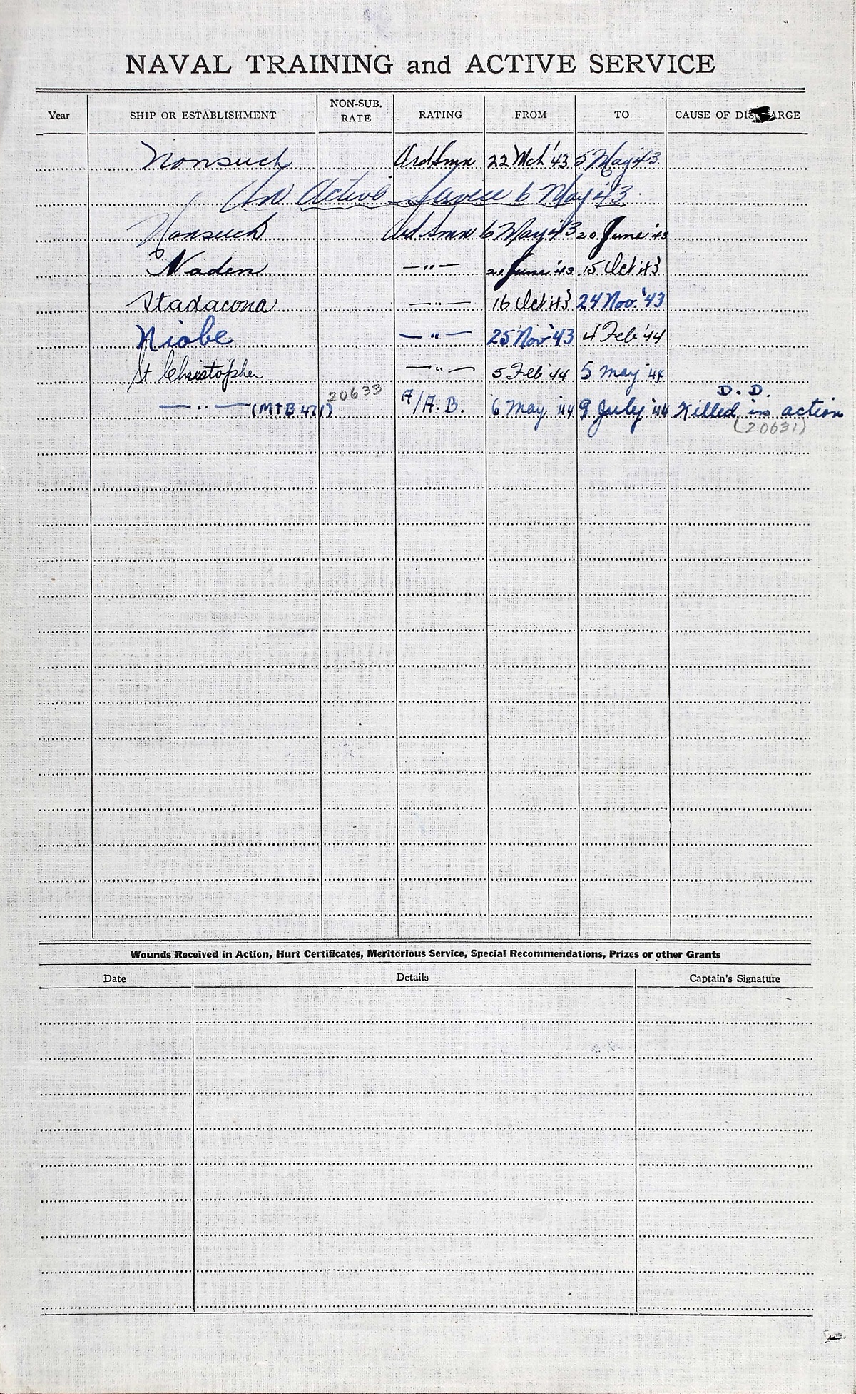 HMCS NONSUCH - Enlisted 22 Mar 1943. Commenced Active Service 06 May 1943