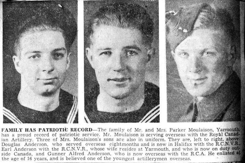 Douglas' brother Earl Anderson also served in the RCNVR during the Second World War.