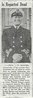 (JWB001) LCdr Bonner Is Reported Missing // Courtesy of the Saskatoon Museum of Military Artifacts (JWB002) Article on the death of LCdr Bonner (JWB003) Service file for John Bonner // Source: The Library and Archives of Canada (JWB004) RCMP Book of Remembrance entry