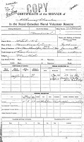 Ships served in: MONTREAL DIVISION RCNVR - Enlisted 23 Sep 1941. Commenced Active Service 29 Jan 1942 HMCS ST HYACINTHE - Drafted to ST HYACINTHE 02 Apr 1942 as an OS W/T RCNVR * Rated O/Tel 02 13 Jun 1942 HMCS STADACONA - Drafted to STADACONA 25 Aug 1942 as an O/Tel, RCNVR HMCS FREDERICTON - Drafted to FREDERICTON 27 Aug 1942 as a O/Tel, RCNVR * Rated Tel 29 Jan 1943 HMCS ST HYACINTHE - Drafted to ST HYACINTHE 14 Oct 1944 as a Tel, RCNVR * Rated A/L/Tel 01 Jan 1945 (Advanced) HMCS PEREGRINE - Drafted to PEREGRINE 02 Jan 1945 as a L/Tel, RCNVR HMCS RED DEER - Drafted to RED DEER 11 Jan 1945 at a L/Tel, RCNVR HMCS AVALON - Drafted to AVALON 24 Jun 1945 at a L/Tel, RCNVR HMCS ST HYACINTHE - Drafted to ST HYACINTHE 27 Jun 1945 as a L/Tel, RCNVR HMCS DONNACONA - Drafted to DONNACONA 30 Aug 1945 as a L/Tel, RCNVR * Demobilized 17 Sep 1945