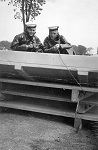 (CA94) Unknown sailor on HMCS FREDERICTON K245, Cuba (CA95) Seymore (left) and Gunnery Officer Hardy on HMCS FREDERICTON K245, Cuba (CA96) Swales on lookout on HMCS FREDERICTON K245 (CA97) Robinson and Fraser (closest with back to camera) having a friendly match on HMCS FREDERICTON K245 (CA98) Unknown officer and sailor on HMCS FREDERICTON K245, port side just aft the gun deck. It looks like the officer is squaring off for some fisticuffs