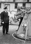 (CA191) Unknown sailor by a depth charge on HMCS RED DEER J255 in St. John's (CA192) Two unknown sailors by the ship's work boat on HMCS RED DEER J255. Shoreline of Newfoundland in the back ground (CA193) A quiet day in the radio room of HMCS RED DEER J255 while alongside in St. John's