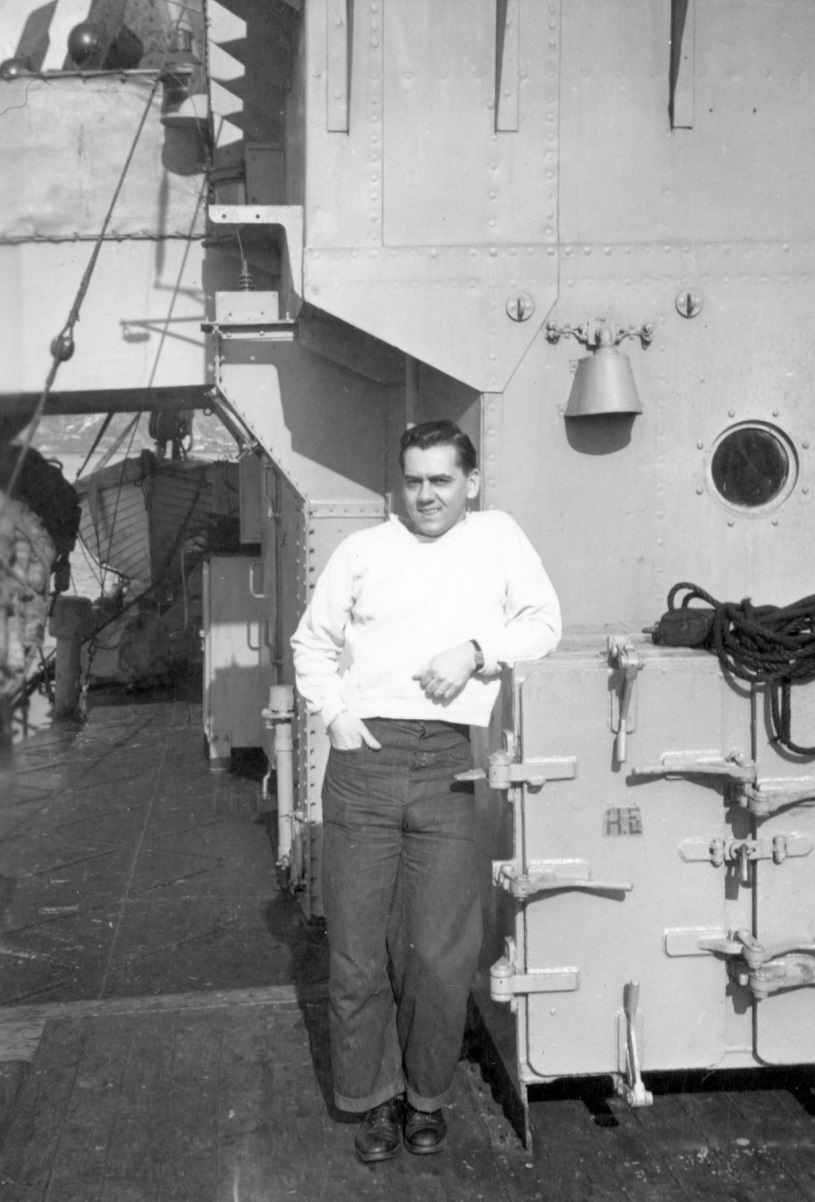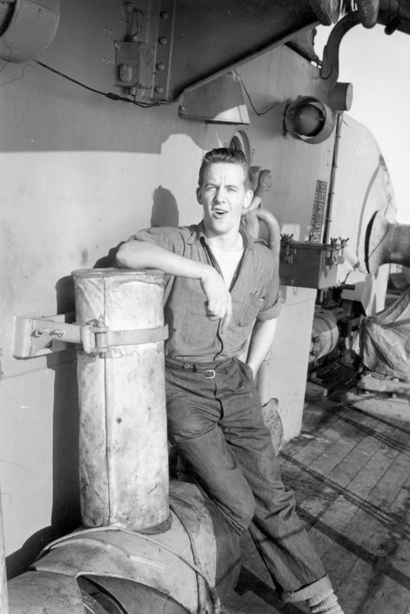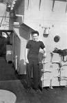 (CA186) HMCS RED DEER J255 (CA187) Charles Atkins in the bridge window of HMCS RED DEER J255 in St. John's (CA188) Charles Atkins by the ready use ammunition locker HMCS REED DEER J255 in St. John's (CA189) Unknown sailor by the ready use ammunition locker on HMCS RED DEER J255 in St. John's (CA190) Unknown sailor on top of the bridge of HMCS RED DEER J255