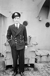 (CA167-CA171) HMCS FREDERICTON K245 heavily iced-up after a winter crossing in the North Atlantic (CA171) Unknown officer on the boat deck of HMCS FREDERICTON K245