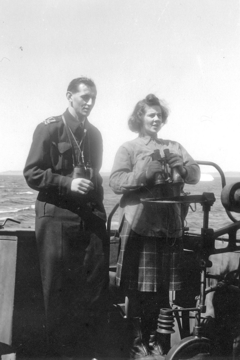 (CA194) Unknown officer with a woman (possibly a wren) by the bridge Oerlikon of HMCS RED DEER J255. Iceberg and the coast of Newfoundland in the background (CA195) Depth charge exploding astern of HMCS RED DEER J255 (CA196) Looking aft from the boat deck of HMCS RED DEER J255 (CA197) Unknown officer by the ready use ammunition locker on HMCS RED DEER J255 (CA198) Unknown officer by forward gun on HMCS RED DEER J255 in Halifax