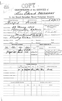 Ships served in: TORONTO DIVISION RCNVR - Enlisted 07 Apr 1941. Commenced Active Service 07 Apr 1941 HMCS BEAVER - Served in BEAVER 02 Jul 1941 - 24 Oct 1941 as an A/ERA 4c, RCNVR HMCS GEORGIAN - Served in GEORGIAN 27 Oct 1941 - 01 Dec 1943 as an a/ERA 4c, RCNVR HMCS NEW WATERFORD - Served in NEW WATERFORD 24 Mar 1944 - 11 Jul 1945 as an ERA 4c and ERA 3c, RCNVR. Rated ERA 3c 21 Sep 1944 HMCS STAR - Drafted to Star 19 Jul 1945 as an ERA 3c, RCNVR. Demobilized 16 Aug 1945