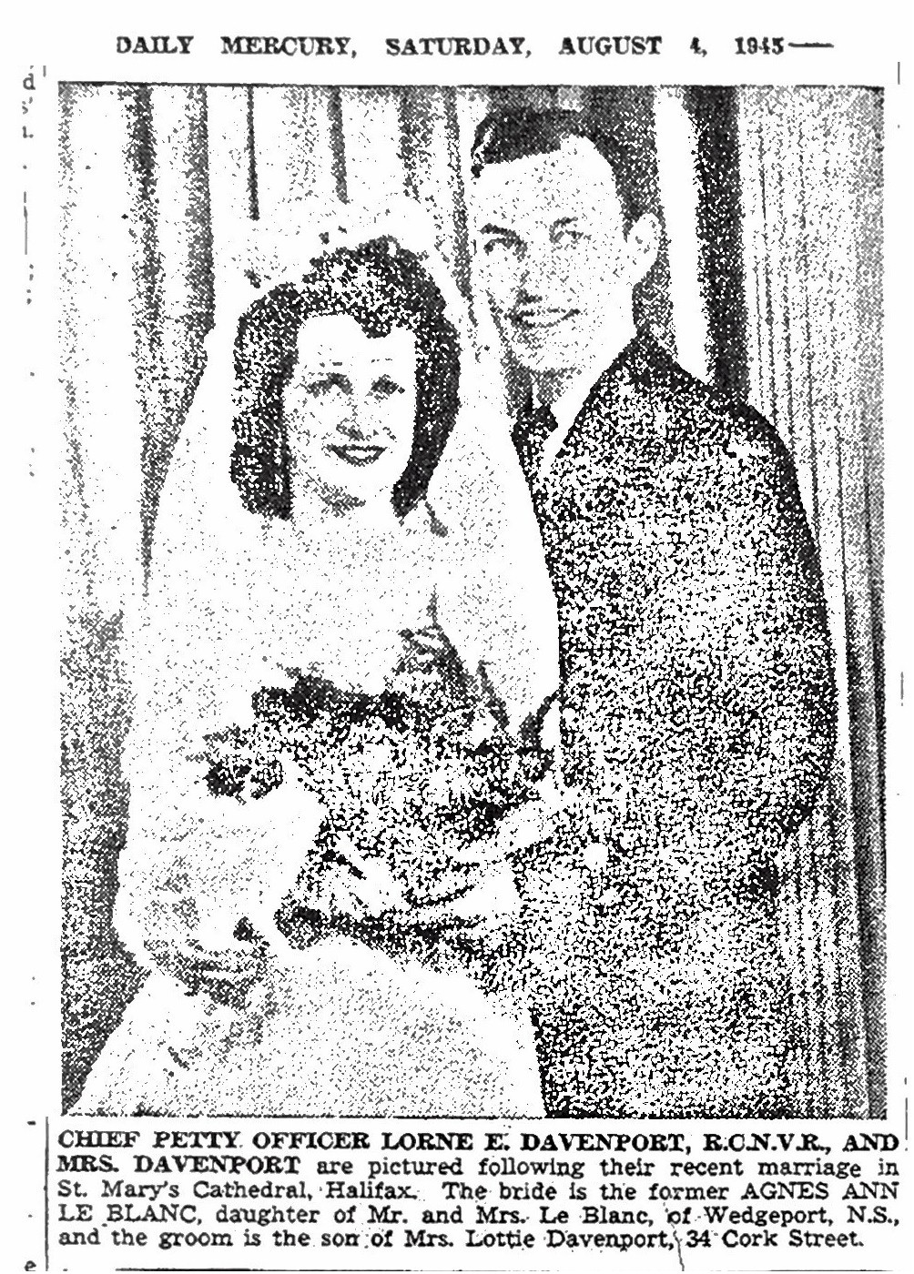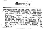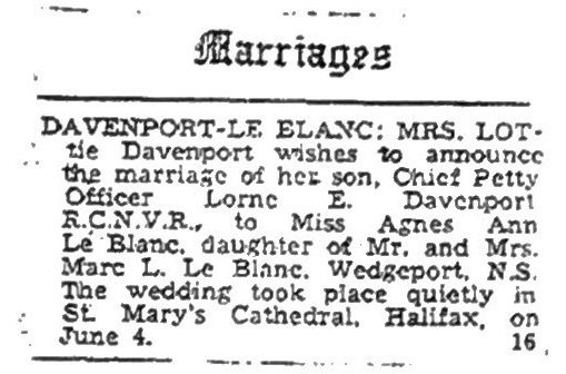 (LD01) Service file for ERA Lorne Davenport (LD02-LD03) Marriage announcements for Anges (née Le Blanc) and Lorne Davenport