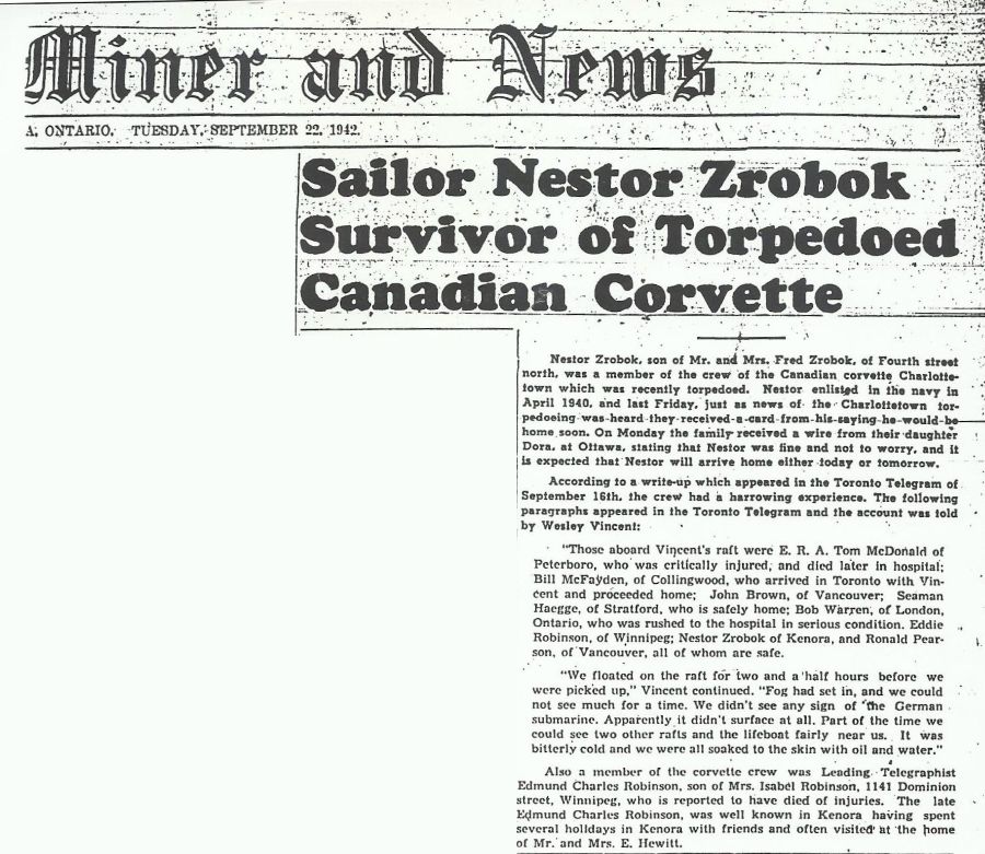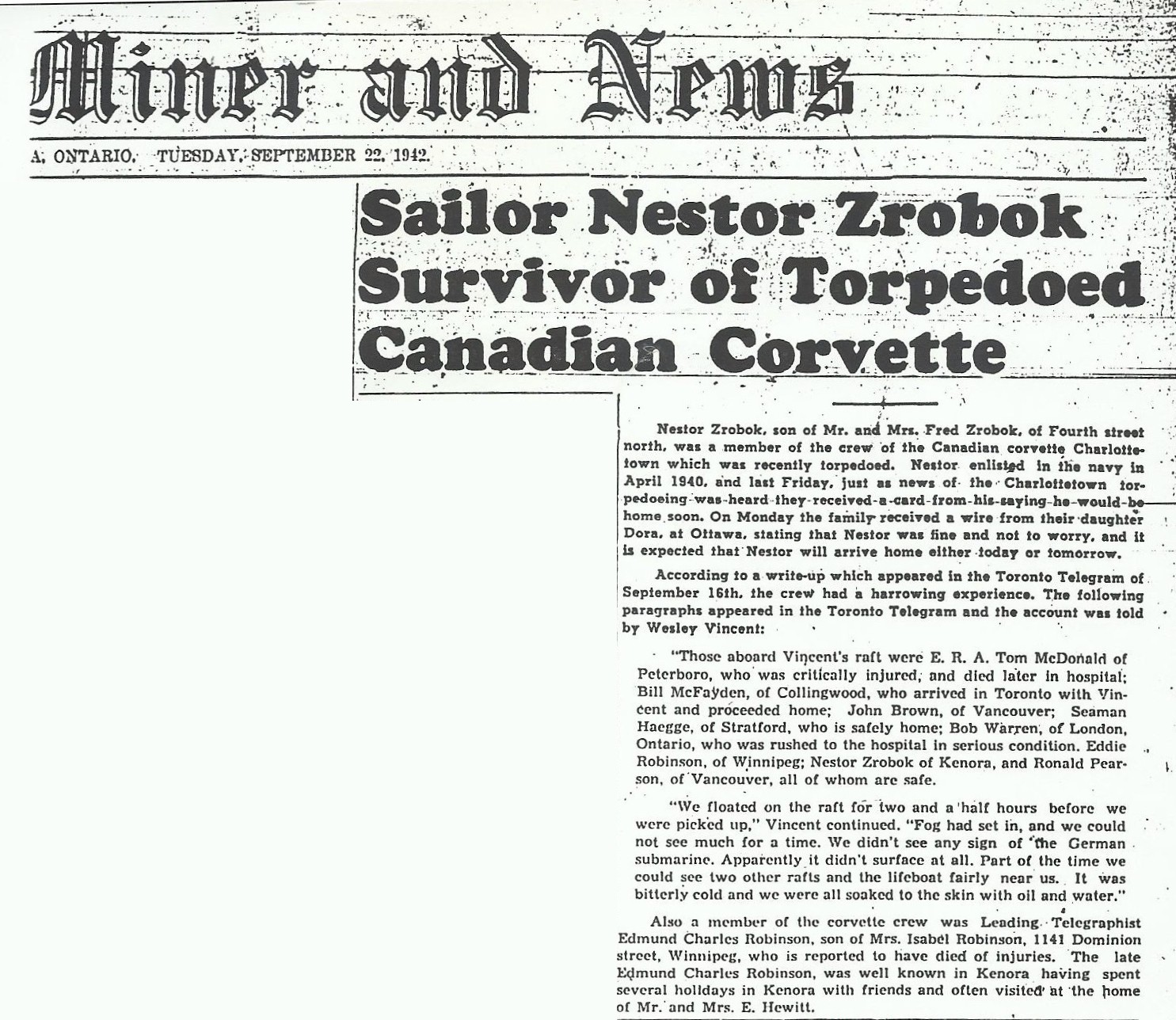 ROBINSON, Edmund Charles, L/Tel, V/9661, RCNVR, DOW - 13 Sep 1942, HMCS CHARLOTTETOWN - Son of Herbert and Isabel Robinson, of Winnipeg.