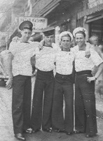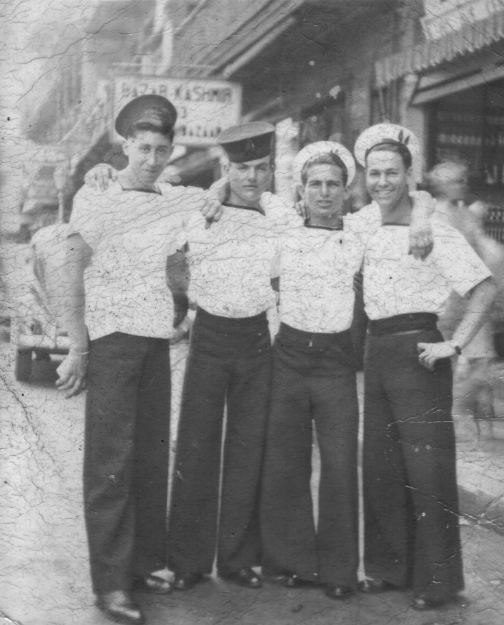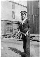 (DH01) Portrait of Seaman Dale Hudgins (DH02) Dale Hudgins posing with rifle - possibly while on jetty sentry duty - location unknown (DH03) Dale Hudgins (left) ashore with shipmates in an unknown port