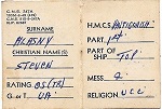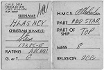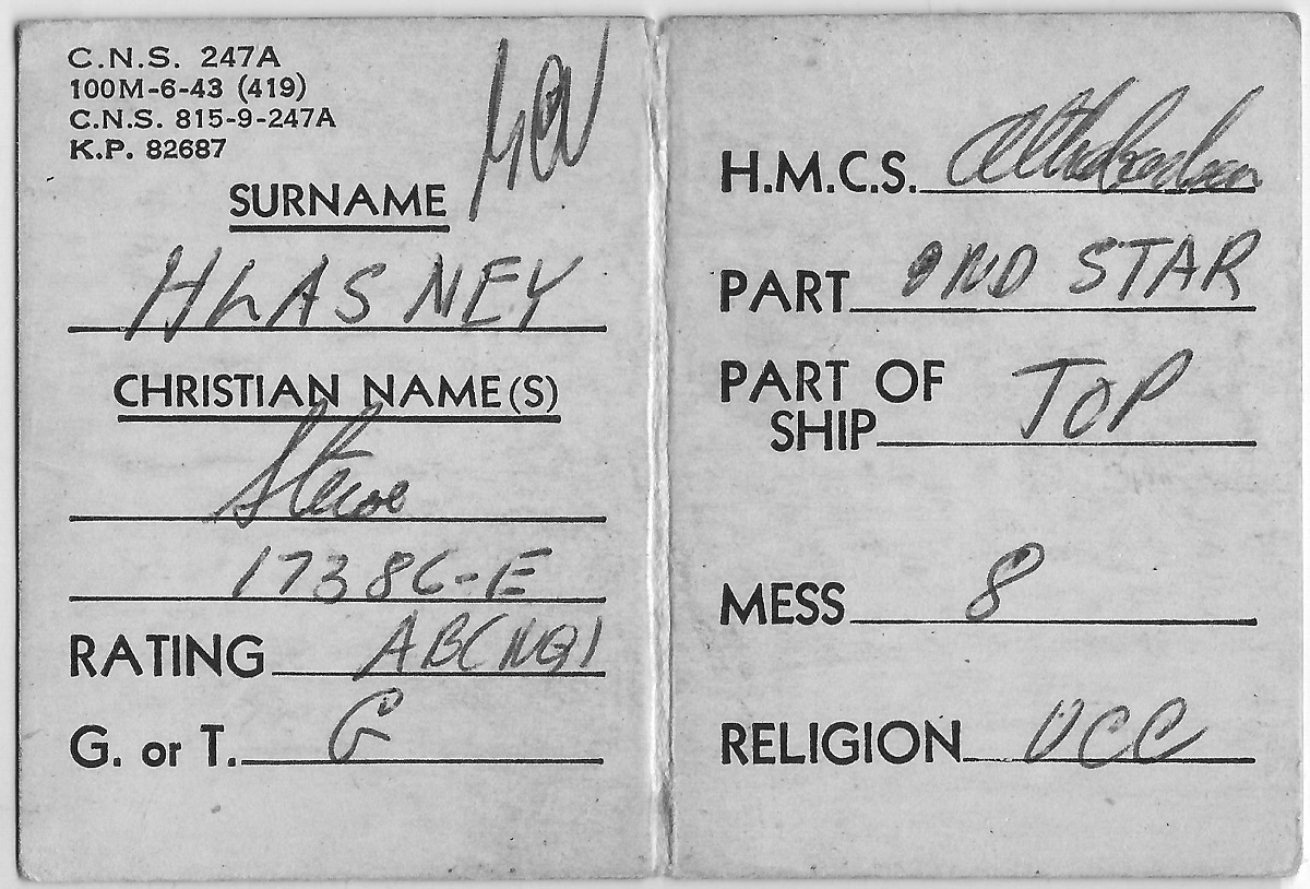 (SH62) Station card of Steve Hlasny on HMCS ATHABASKAN (SH63) HMCS ATHABASKAN 219 departing Pearl Harbour for Korea - 1952
